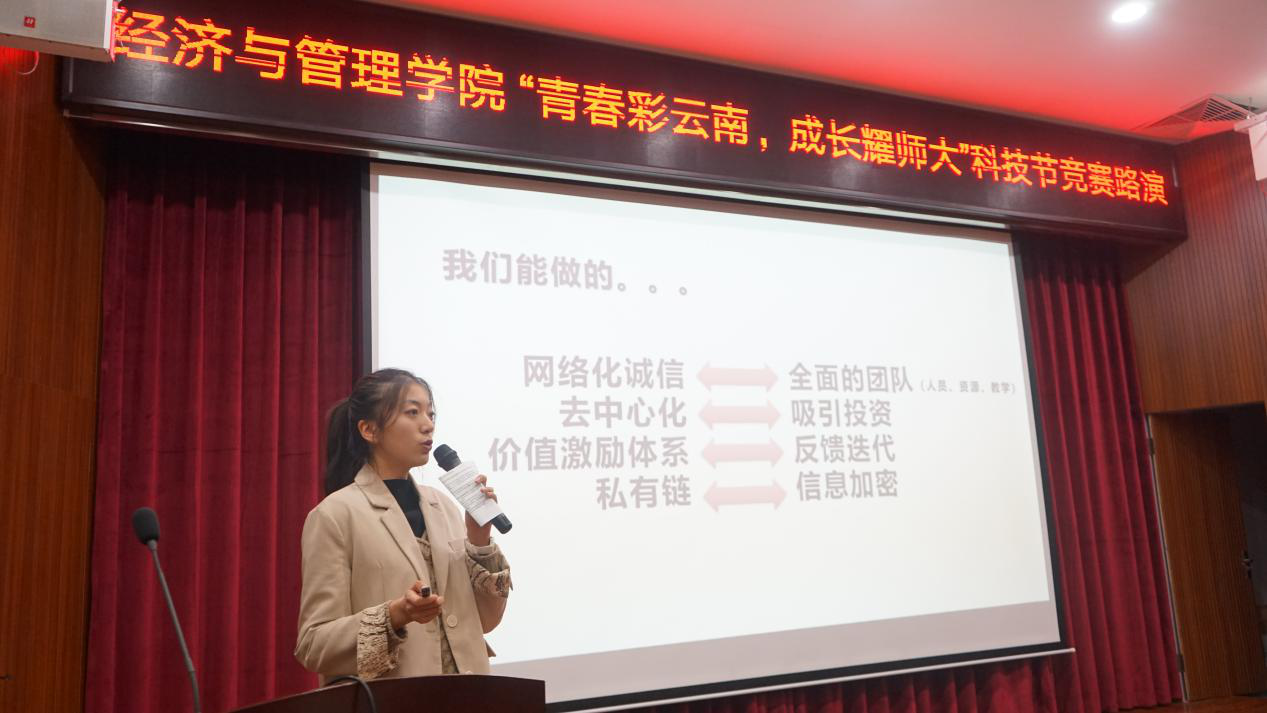 为进一步丰富公司员工校园文化生活,培养员工“崇尚科学,追求真知”的求实创新精神,展示老员工的创新风采,由2026世界杯官方合作网站经济与管理公司共青团委承办的“青春彩云南·成长耀师大”员工科技节暨员工课外科技作品答辩竞赛于2020年11月26日晚6时30分在明德1号楼101报告厅顺利举行。本次活动邀请到了贾雁岭、陈晔婷两位老师及数名员工代表作为评委,对参赛选手作品进行随机提问和评价。参赛选手共16组,每组由一名代表上台对所选课题进行相应阐述并回答评委问题。