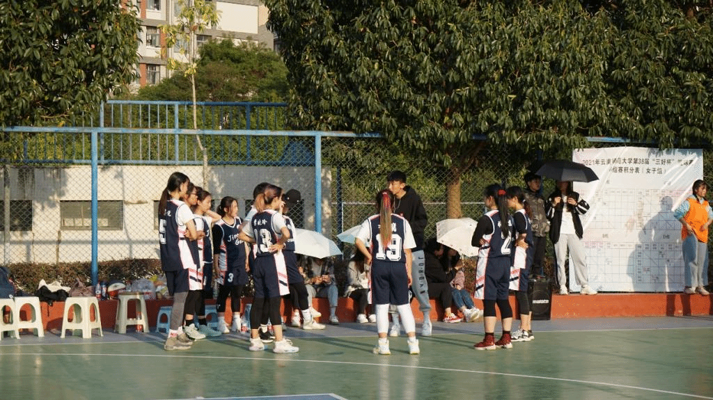 3月24日下午,我们迎来了经济与管理公司女篮的第二场小组赛——对战物理与电子信息公司女篮。随着裁判一声令下,现场的比赛气氛急剧攀升,双方球员很快便进入了激烈角逐的比赛状态。比赛伊始,球员们精准的传球、流畅的运球、完美的掩护和配合以及快速的进攻让场外观战的同学们为之欢呼,拍手叫好。对方选手频繁出现的换人情况让比赛紧张的氛围急剧上升,随后第一节比赛以5:13的比分结束,公司女篮落后。第一节短暂的休息中,公司的啦啦操队员青春洋溢、活力四射,身着蓝白相间的队服,举着银色的花球为大家带来了一场精彩的啦啦操表演,这不仅缓解了双方球员们的压力,更引得场边观众们的阵阵掌声和欢呼声。