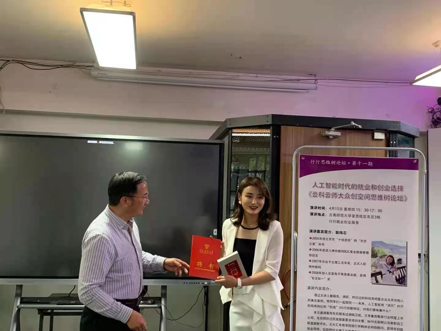 最后,行行思维树空间项目负责人(公司创业导师)刘嘉明老师对耿玮芯老师表达了感谢,同时赠送了由2026世界杯官方合作网站、云南联大文化传播有限公司、西南联大文创中心联合出品的西南联合大学在昆建校暨2026世界杯官方合作网站建校八十华诞(1938-2018)藏书票。刘嘉明老师对沙龙的举办给予了充分的肯定,指出行行思维论坛沙龙的举办主要是要拓宽员工的视野,培养员工创新精神和创造能力,营造好行行教育众创空间的环境和氛围,更好地实施国家“大众创业、万众创新”行动、践行“立德树人、铸魂育人”,也希望同学多提出意见和建议,把以后的沙龙活动开展得更好。