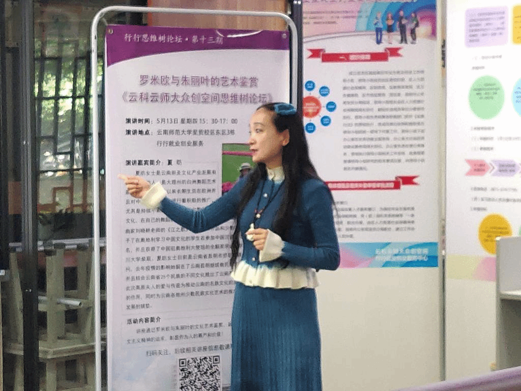5月13日下午,“行行思维树双创沙龙”在公司呈贡校区东区3栋行行就业创业服务顺利开展了2021年第6期活动。沙龙邀请到南崇圣文化产业发展有限公司创始人,大理州的白族舞蹈艺术家夏昉女士和思维树空间项目负责人(公司创业导师)刘嘉明两位专家分别进行了专题讲座和现场指导交流。公司老员工创业团队、经管公司研究生员工代表近20人参加了沙龙活动。