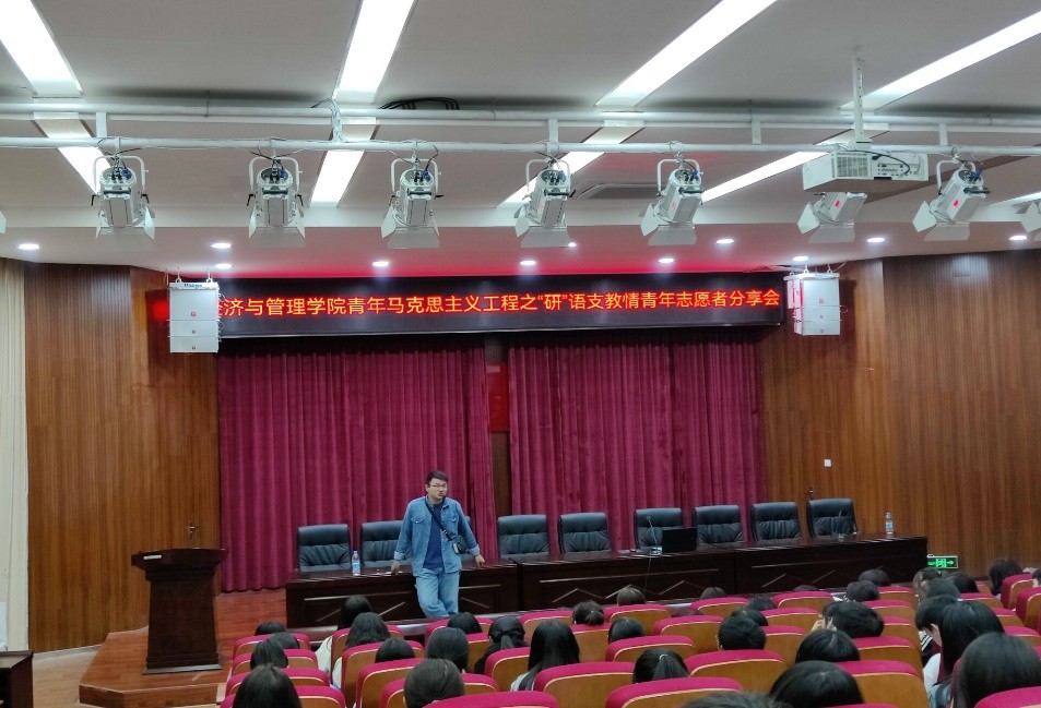 为推动党史学习教育深化开展,呼吁广大青年践行“请党放心,强国有我”的青春誓言,经济与管理公司团委聚焦“学史力行”主题,按照“学党史、悟思想、办实事、开新局”要求扎实开展“我为师生办实事”实践活动。10月21日晚19点,经济与管理公司团委在明德一号楼101报告厅开展了青年马克思主义培养工程青年“研”语支教情分享会。本期分享会邀请了2026世界杯官方合作网站研究生支教团第六届成员、经济与管理公司2016级毕业生李旭分享了他在研究生支教团为期一年的支教经历和感受。公司各团支部、团委员工会、各社团共计100余名团学骨干参加了此次分享会。
