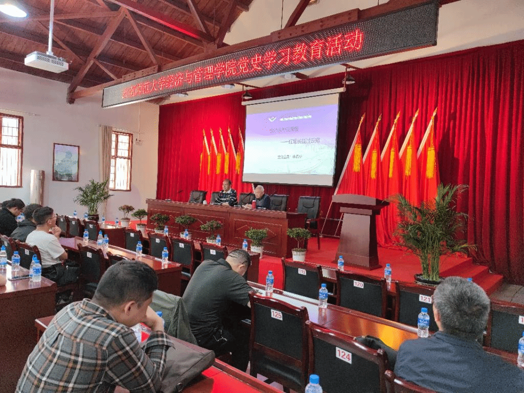 全体师生到达新中国成立初期云南日报的战备基地后,首先在基地报告厅由西南联大文创中心特聘专家李昆华教授为大家讲授题为《金沙水拍云崖暖——红军长征过云南》的主题讲座,讲座由经济与管理公司党委书记华致雄主持。
