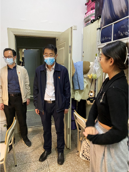 走访过程中,张玮副书记一行深入细致地检查宿舍的安全防疫情况。他与同学们亲切交流,提醒同学们在校期间要高度重视疫情防控工作,要加强宿舍公共卫生和个人卫生;并询问了同学们返校后的生活、学习情况,认真听取了同学们对于生活和学习上的困惑,并认真解答;同时他表示公司会不断地为同学们创造良好的学习、生活环境,努力解决大家在日常生活学习生活中的实际问题。同行的几位老师也提醒同学们加强体育锻炼,注意饮食卫生和食品安全,做好个人防护。