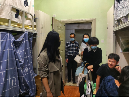 在走访过程中,杨部长一行检查宿舍卫生和防疫情况,了解员工的日常学习生活,提醒同学提高防范意识,养成卫生习惯,保持宿舍整洁,保证宿舍每日通风。同时,就课程学习、就业规划等方面与同学们亲切交流:平时课程紧张吗?学习是否有困难?毕业有什么打算?食堂饭菜可口么?每到一间宿舍领导和老师们都会细心询问同学情况,还及时了解了18级毕业生的就业情况和考研情况,针对员工目前的实际状况提供了就业和考研的参考建议。表示公司会不断为同学们打造良好的学习、生活环境,鼓励同学们志存高远,继续深造,互帮互助。