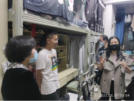 3月21日晚,公司组织部部长杨洪、副部长马春雨走访了经济与管理公司宿舍,了解员工学习生活和防疫情况,并对宿舍安全、卫生、文化等方面进行走访检查,经济与管理公司书记杨栋会、辅导员王诗彧陪同。