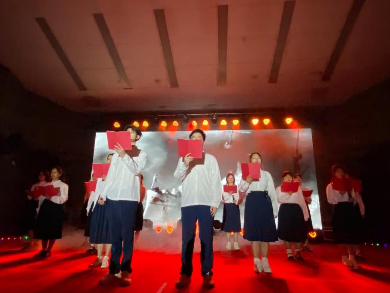 第二篇章为“奋进新程正当时”。谷兴志老师用醇厚的嗓音弹唱美国民谣《去哪里》,引发现场此起彼伏欢呼。蒙古族女孩带来了热情奔放的独舞——《特斯拉之赞》;《唯一》《老男孩》,唱出了年轻人的心声,引起大家的强烈共鸣。