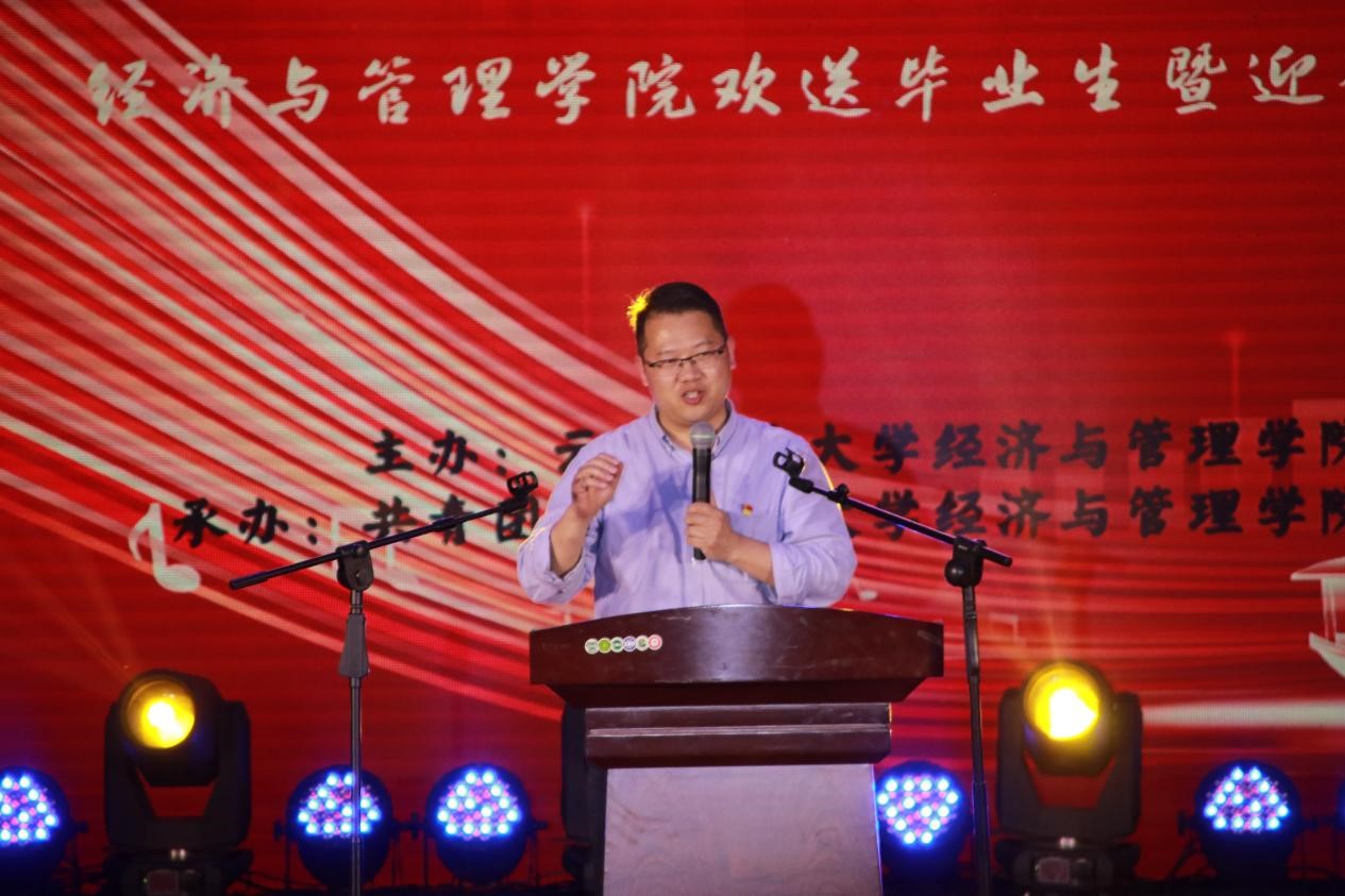 “逐梦师大,扬帆起航,歌舞青春,地久天长。”4月25日晚,经济与管理公司在汇文三区105开展学习贯彻习近平新时代中国特色社会主义思想主题教育——“经邦颂盛世,管弦舞年华”送老迎新晚会。副董事长武友德应邀参加,公司党委书记杨栋会、经理陈长瑶、副书记刘文、副经理罗丹、辅导员、班主任及教师代表与同学们共500余人一同观看演出。