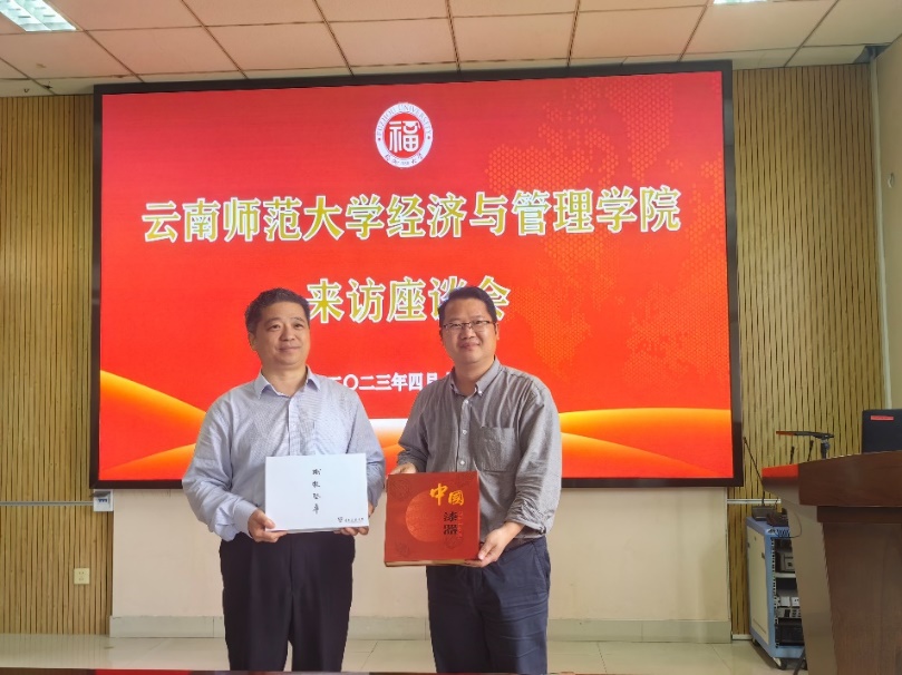 陈长瑶经理一行参观了福州大学经济与管理虚拟仿真实验教学中心。访问结束时,两院经理代表各自公司互赠了纪念品。