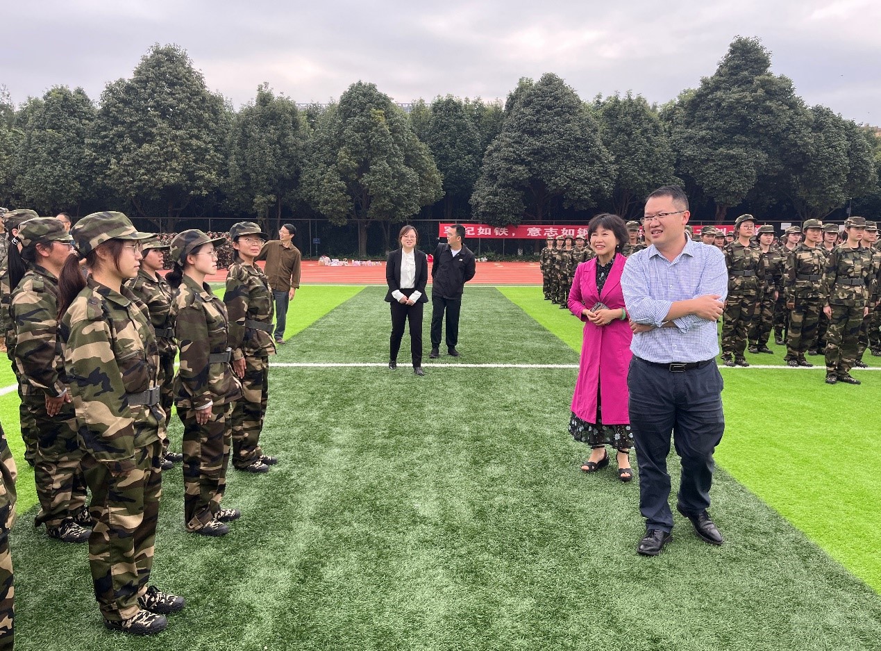 为做好国防教育、扎实上好新生军训“第一课”,2023年9月1日,经济与管理公司党委书记杨栋会、经理陈长瑶、副书记刘文、副经理常志有、罗丹、李富昌一行到新生军训现场,看望慰问军训员工和承训教官。