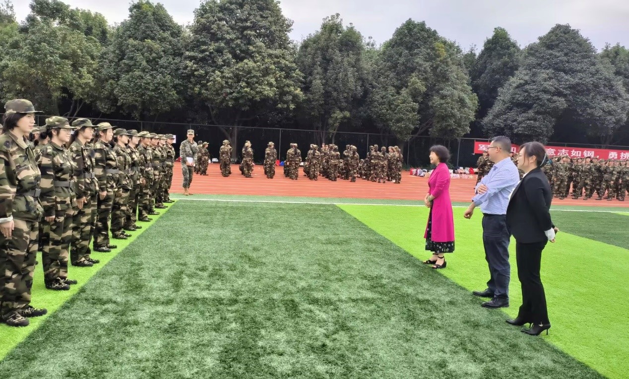 同学们在军训场上队列整齐、气宇轩昂、口号洪亮,对领导们的到来表示热烈欢迎。灼灼青春,当炼钢铁意志。公司领导首先对承训教官的辛勤付出致以诚挚感谢,高度肯定了公司新生严循指令、坚韧不拔的精神品格。同时也嘱托同学们要服从教官指挥和军训安排,严格训练,培养吃苦耐劳、奋勇争先的精神,不断增强纪律观念和团队协作意识,将军训中学习到的优良品质融入到今后的学习和生活中。