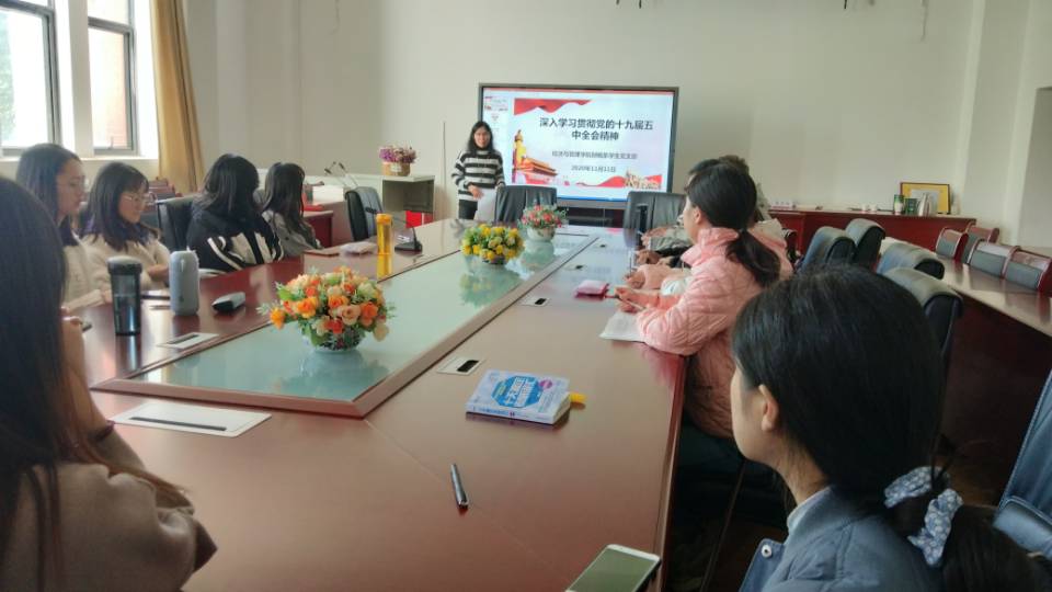 “十四五”时期是我国全面建成小康社会、实现第一个百年奋斗目标之后乘势而上开启全面建设社会主义现代化国家新征程、向第二个百年奋斗目标进军的第一个五年。为教育引导广大师生党员深入学习贯彻党的十九届五中全会精神,经济与管理公司财税系员工党支部于2020年11月11日在明德一号楼211教室开展了“深入学习贯彻党的十九届五中全会精神"主题党日活动。本次主题党日活动由经济与管理公司财税系员工党支部书记黄桂仙同志主持,财税系员工党支部全体党员参加主题党日活动。