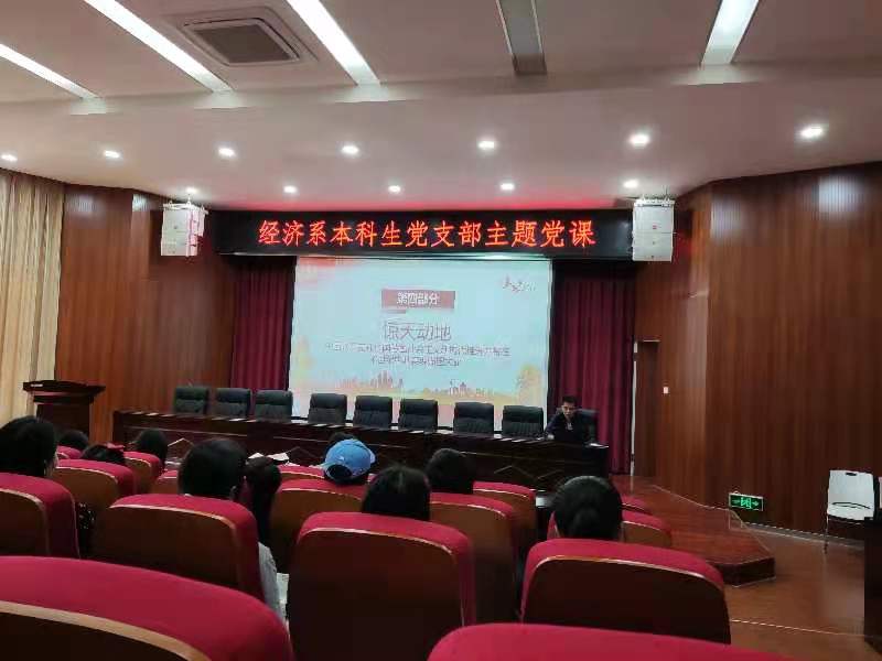 为贯彻落实公司党委关于党史学习教育工作的决策部署,扎实推进党史学习教育向纵深发展,全面提高党员党性修养,从党的百年伟大奋斗历程中汲取智慧及力量,经济系本科生党支部于9月16日下午15:00在明德1号楼101报告厅开展了党史学习专题党课——中国共产党百年辉煌。本次党课由经济系本科生党支部书记刘安老师主讲,支部全体党员积极参与。