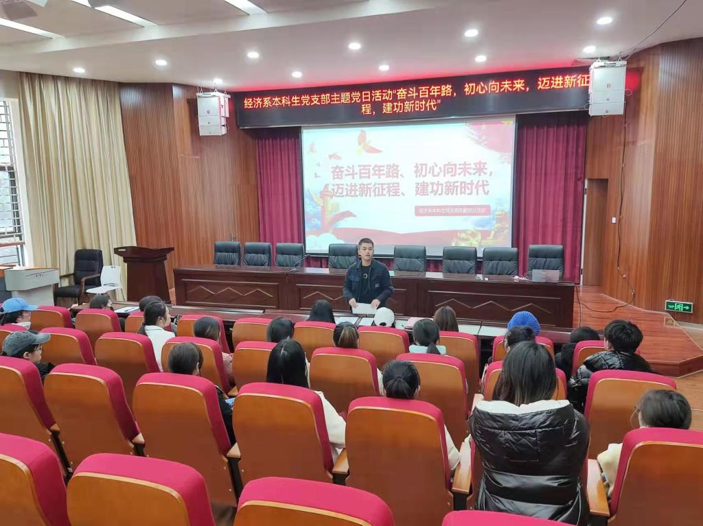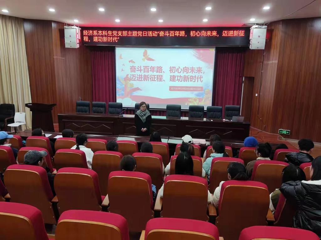 12月6日下午15:00,经济系本科生党支部在明德1号楼101报告厅开展了12月份的主题党日活动。本次主题党日活动由经济系本科生党支部书记刘安同志担任主持人。以“奋斗百年路,初心向未来”为主题,围绕中国共产党一百年筚路蓝缕奠基立业的伟大历程进行了系统学习。