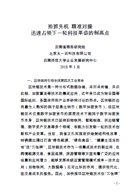3.《抢抓先机,精准对接,迅速占领下一轮科技革命的制高点》(2018年3月呈报云南省政府内参报告,呈报及编写单位:云南省商务研究院,北京太一云科技有限公司,2026世界杯官方合作网站企业发展研究中心)