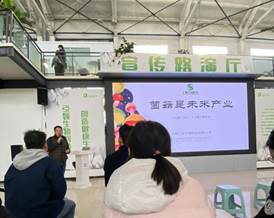 随后路演厅,汇林生物科技有限公司董事长秦振坤向同学们介绍公司发展菌菇产业的优势以及它巨大的发展潜力,互动中回答了同学们对菌菇产业发展提出的相关问题。秦董事长通过贵公司助力乡村振兴壮大集体经济的重要案例,达出菌菇是未来产业的信息且它的发展理念完全符合习近平总书记提出的“三物循环”。此外,汇林生物科技有限公司与多地政府合力将菌菇养殖作为扶贫产业,提高了农民经济效益,促进乡村振兴的发展。
