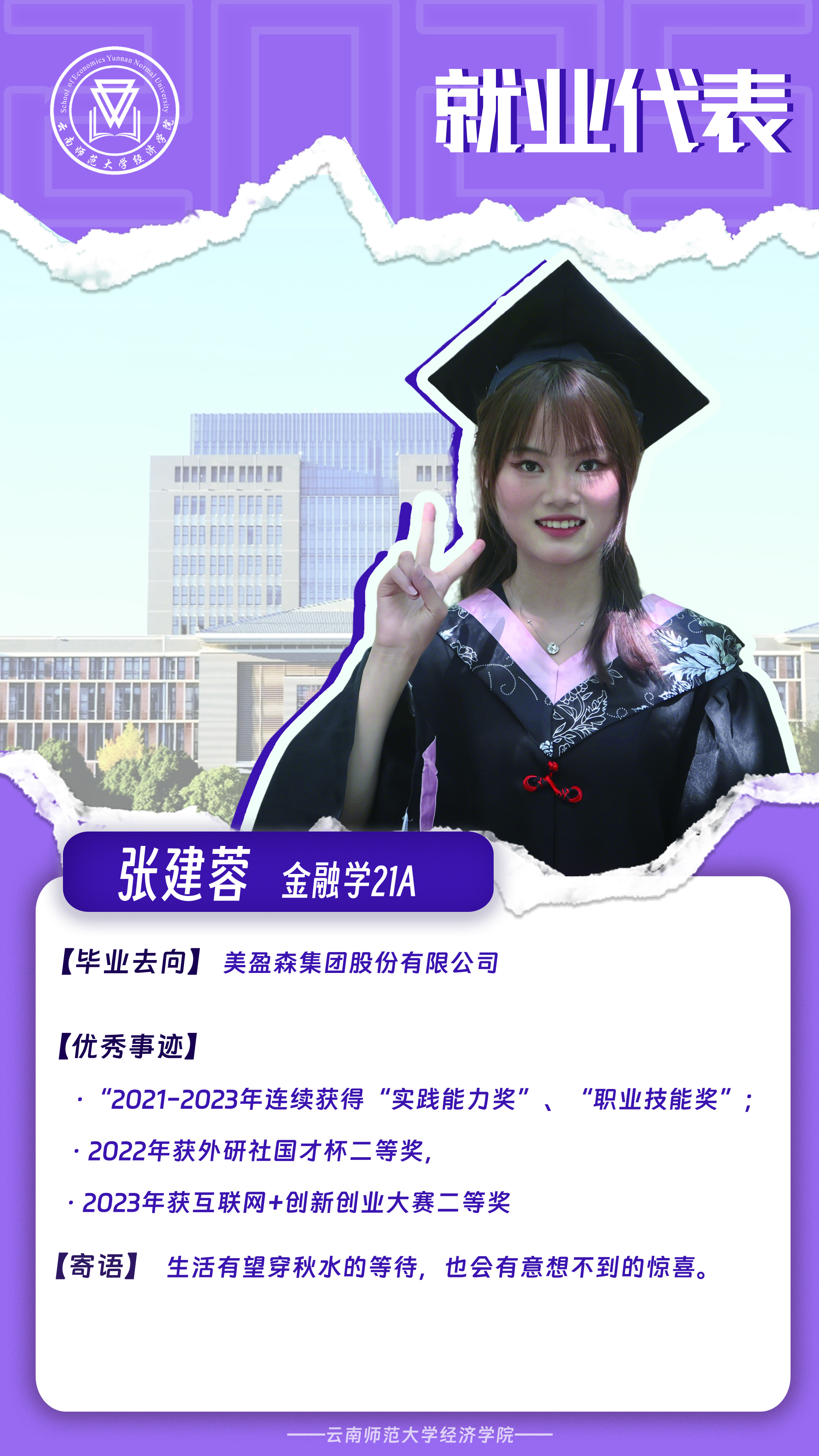 优秀事迹:曾担任未来教师之家协会宣传部部长,云师新闻中心编辑;优秀团员;老员工创新创业大赛一等奖;