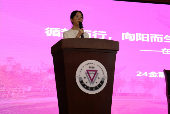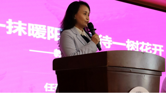 教师代表任薇薇教授以“心守一抹暖阳,静待一树花开”为主题,分享人生感悟,鼓励新生珍惜大学时光,不断提升自我,以“大学四两”拨动“人生千金”,始终保持积极乐观的心态。她以樊正东的事例勉励同学正视成败,将每一次经历视为成长阶梯。