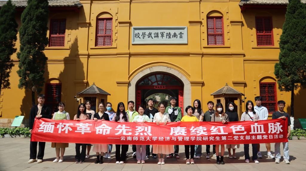 支部党员参观了抗战胜利纪念堂和云南陆军讲武堂。在云南人民英雄纪念碑前,支部党员重温入党誓词,向革命先烈致敬并敬献菊花,表达对革命先烈的崇敬与怀念之情。参观《云南人民革命斗争史》展厅,支部党员系统回顾了自1840年鸦片战争到1950年云南解放这110年间,云南人民为反抗帝国主义侵略,推翻封建专制统治,争取民族独立和解放所进行的一系列艰苦卓绝的斗争,追忆如火如荼岁月中名垂青史的革命先辈和波澜壮阔的重大事件。